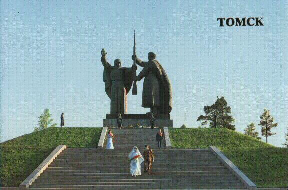 Tomsker Kaempfer. Bildhauer A. Tscherbakow, D. Kirjuchin; Architekten N.Jakowlew, G.Sacharow. Der Lagerny Garten Durch Ausgrabungen wurde festgestellt, dass sich hier der aelteste Standort der Urbewohner Sibiriens befand. Im Sommer 1623 hatte hier der Schmied Fedor Jeremejew das erste Eisenerz gefunden und geschmolzen. Der Lagerny Garten ist ein historischer Ort. Waehrend des Vaterlaendischen Krieges 1812 wurde hier das Tomsker Regiment formiert, das tapfer waehrend der Schlacht bei Borodino kaempfte. In der 80-er Jahren des 19. Jhs lagerten hier die Soldaten der Tomsker Garnison. Darum nannte man diesen Park den Lagerny Garten. Zum 35. Siegesfest des "Grossen Vaterlaendischen Krieges" fand im Lagerny Garten die feierliche Enthuellung des Ehrenmals fuer die Tomsker Kaempfer statt. Die 28 m hohe bronzene Skulpturkomposition stellt die Mutter und ihren Sohn dar. Die Gestalt der Mutter verkoerpert die Mutter-Heimat, die ihrem Sohn ein Gewehr fuer die Verteidigung des Vaterlandes aushaendigt. Am Fuss des Monuments lodert in der Mitte der Steinplatte das Ewige Feuer des Ruhmes und die besten Schueler der Stadt halten hier Ehrenwache. Laengs der Allee, die zum Denkmal fuehrt, stehen Stelen, die ueber ruhmreiche Heldentaten der Tomsker berichten. |